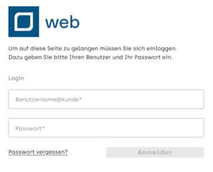 In der Anmeldemaske muss der Benutzername wie im E-Mail angegeben und das Passwort aus dem vorherigen Schritt angegeben werden. Zu beachten ist, dass der Benutzername nicht der E-Mail Adresse entspricht.